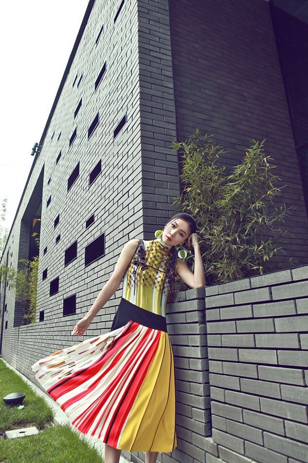 戚薇墨镜红唇演绎复古摩登风尚