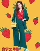 宋妍霏身穿饰满立体樱桃的粉色连衣裙,在绿意盎然的背景下侧身回眸,眼神清澈中带着一丝俏皮,如同从童话森林中走出的精灵。宋妍霏手捧鲜红的草莓展露笑颜,紫色连帽卫衣的休闲感与草莓的甜美气息碰撞,阳光洒落肩头发梢,洋溢着满满的青春活力。宋妍霏倚靠桌边,身穿绿白相间格子方领连衣裙,手拿一个青苹果造型手包,眼神恬静而略带思索,仿佛沉浸在夏日的悠长午后。宋妍霏身着黄绿印花连衣裙,手挎醒目的黄色菠萝造型编织包,整体色调明媚活泼,她对着镜头露出轻松的笑容,仿佛带来了热带海风的气息。宋妍霏一袭白色樱桃印花套装,置身于果园中作采摘状,动作轻盈灵动,画面清新自然,仿佛能透过屏幕闻到淡淡的果香。宋妍霏身穿泡泡袖红色复古长裙,颈戴夸张项链,于暖调光影中展现完美侧颜,整体造型浓郁热烈,散发着复古名伶般的典雅气质。